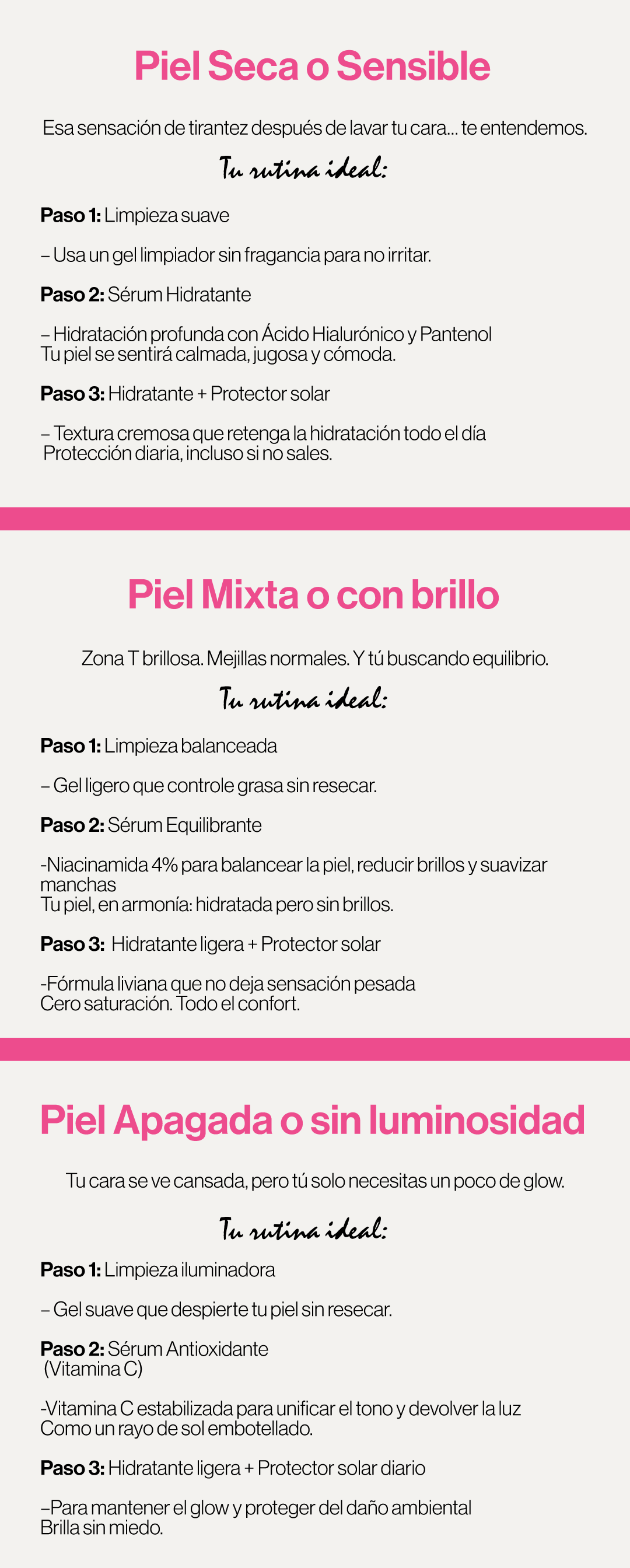 ★★★★★ Había probado otras Vitamina C, pero esta no me irrita nada. Me deja un glow saludable, y hasta siento que mi piel se ve más uniforme y suave